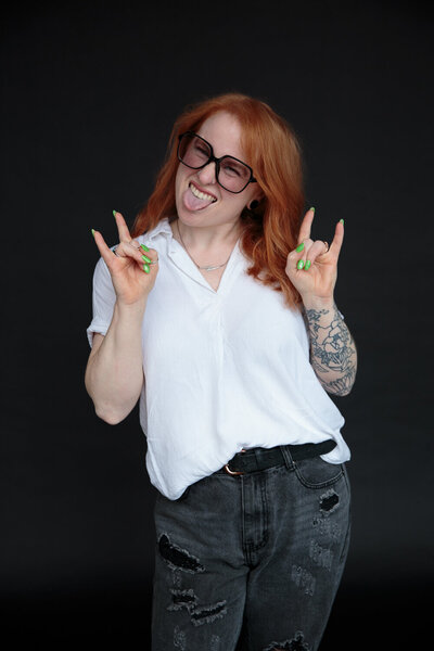 Hate awkward poses? Fuck 'em. Don't wanna sit down cuz you feel like it's school picture day? You do you! Whatever you need, I make sure my sessions are built around you and your comfort. Whether you're celebrating a milestone, updating your brand, or just want photos that actually feel like you, this is a space to show up fully as yourself - with zero pressure to perform.